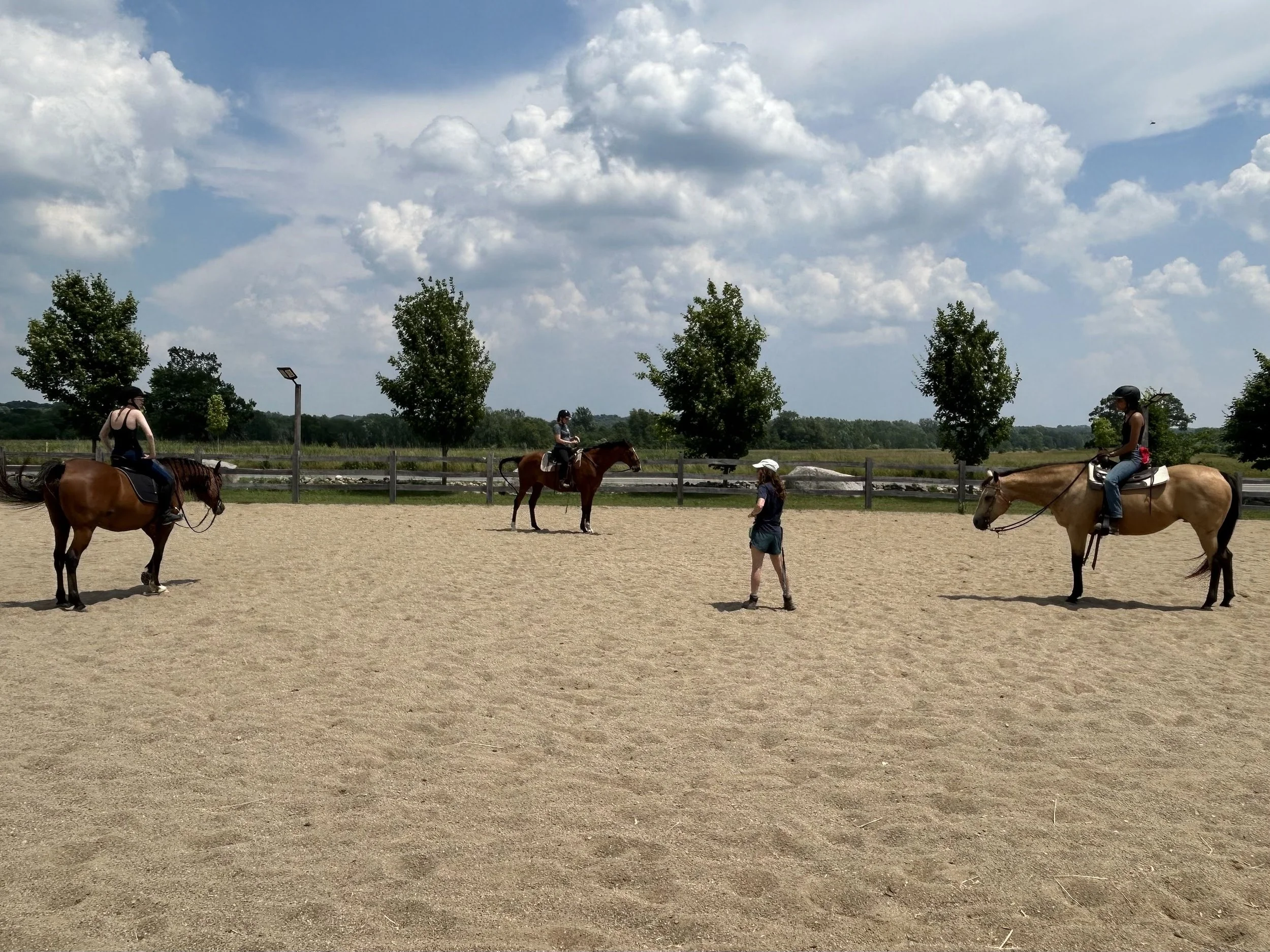 -An hour of riding (can be opted out of, which reduces the cost). The focus of the hour will be on training, relating to the groundwork skill for that week (ex: if we are focusing on lunging as our groundwork skill, we may focus our ride on 20 meter circles at each gait, getting a soft, correct bend, etc. If we are focused on bodywork, we may focus our riding on how to relax or engage specific muscles, etc).