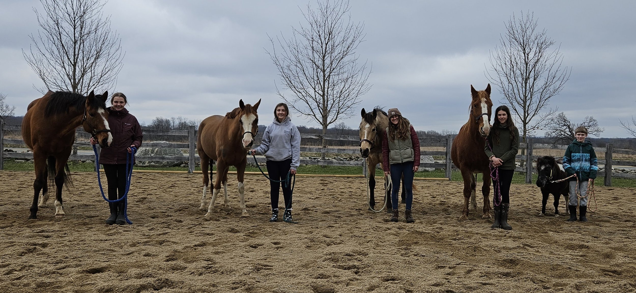 Open to a maximum of 8 riders, ages ~8-13, who can already lead, groom, and walk a horse independently.